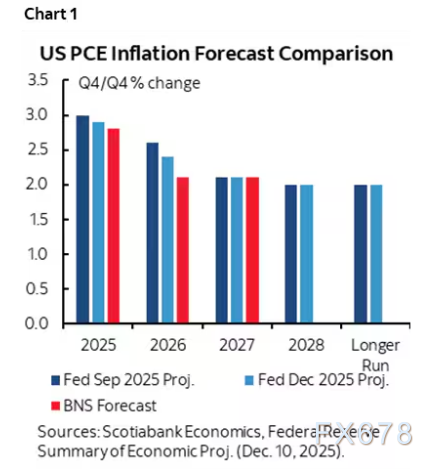 - 核心PCE通胀:2025、2026年各下调0.1个点至3.0%、2.5%,2027-2028年不变