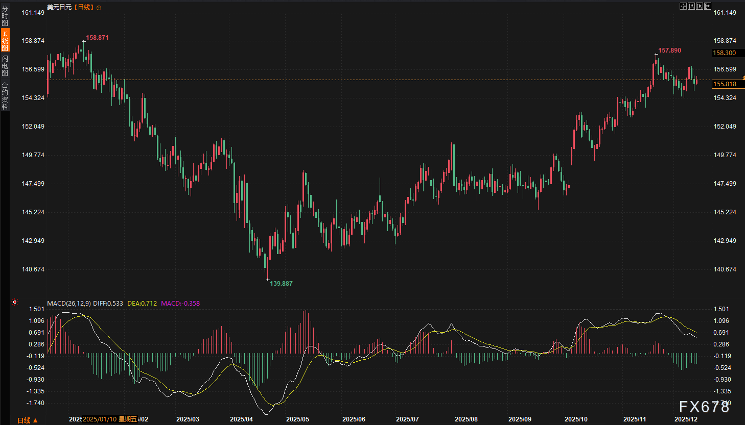美元兑日元本周呈现先涨后跌的走势。周初受美元短暂反弹和风险情绪影响,汇价有所上行。但随着市场注意力转向日本央行下周的利率决议,加息预期持续升温,为日元提供支撑,推动美元兑日元回落。全周来看,日元兑美元升值约0.31%。